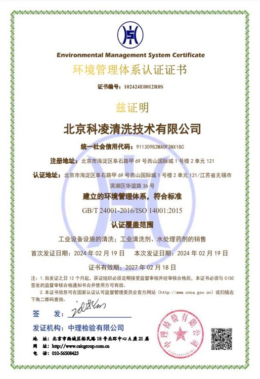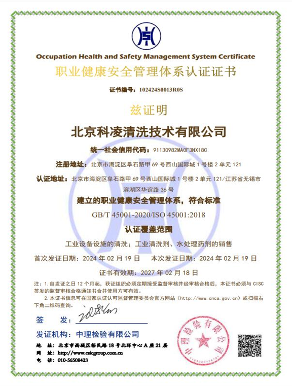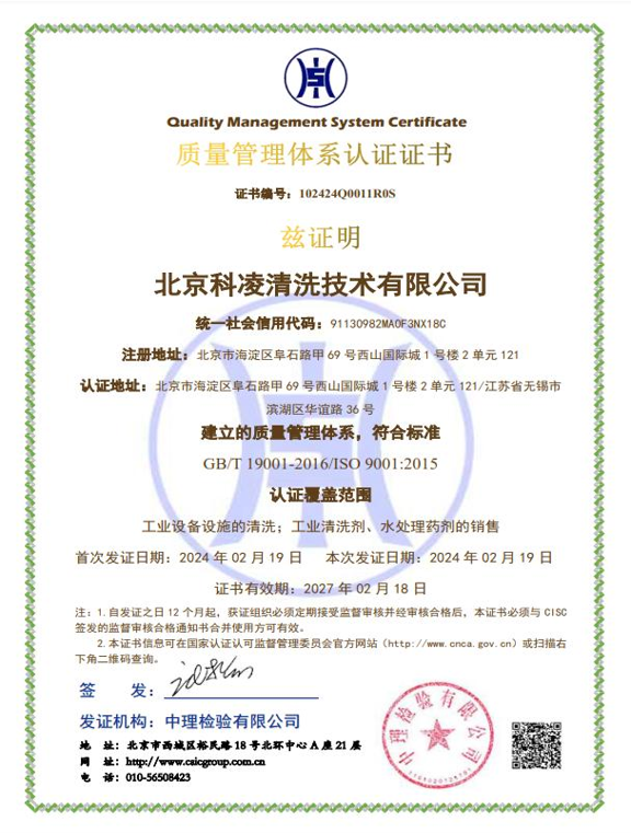 工业清洗企业资质证书